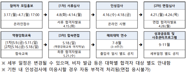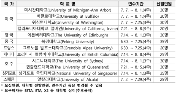- 지원 혜택: 항공료, 숙박비, 연수비, 문화체험비 100% 전액 지원