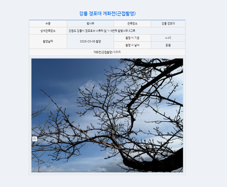 • '자세히 보기'를 클릭하면 근접 촬영 사진으로 나무의 개화 상태를 상세히 확인할 수 있습니다.