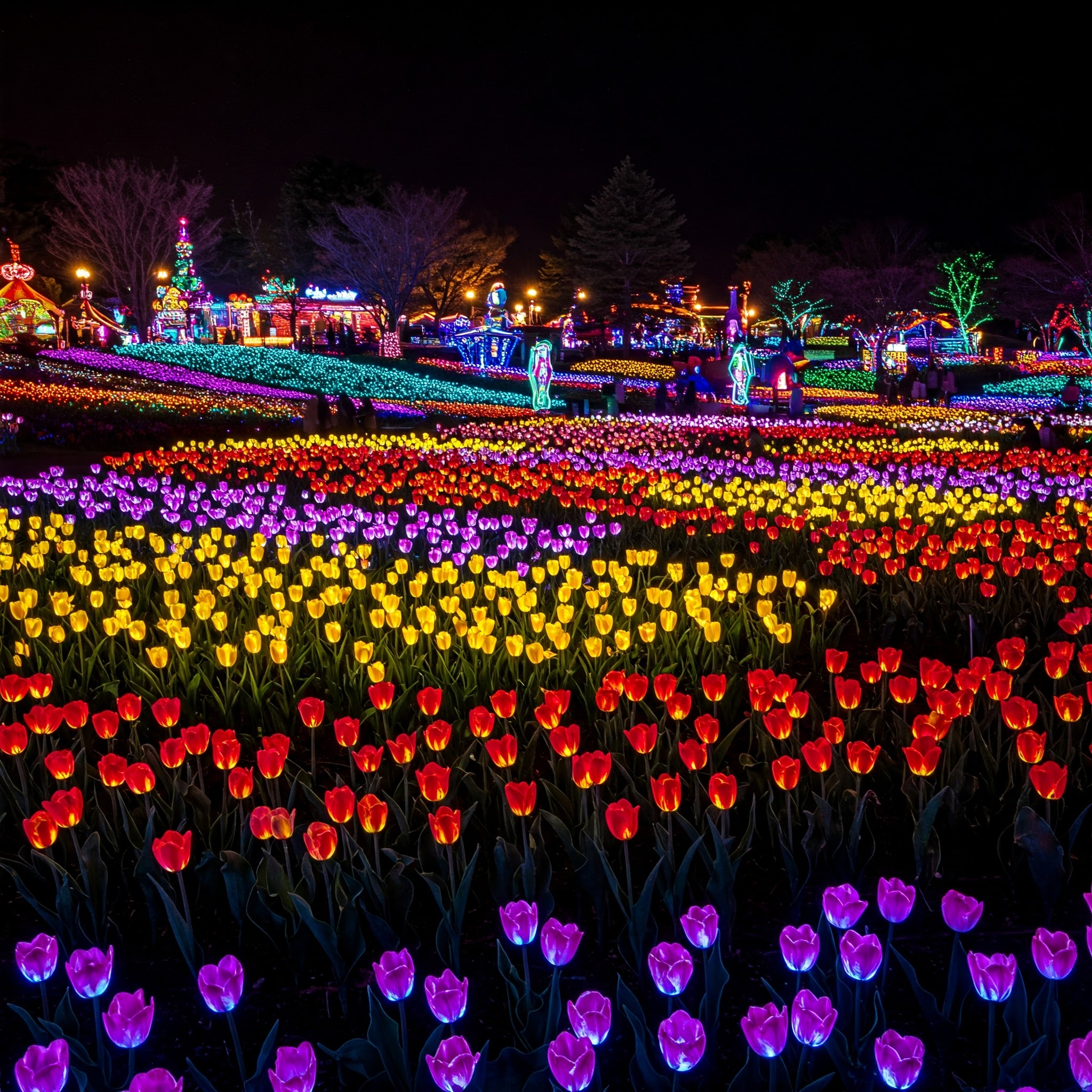 - 야간 콘텐츠의 매력!: 낮과는 또 다른 매력을 발산하는 야간 콘텐츠! 화려한 조명 아래 펼쳐지는 튤립의 향연은 감동 그 자체랍니다.